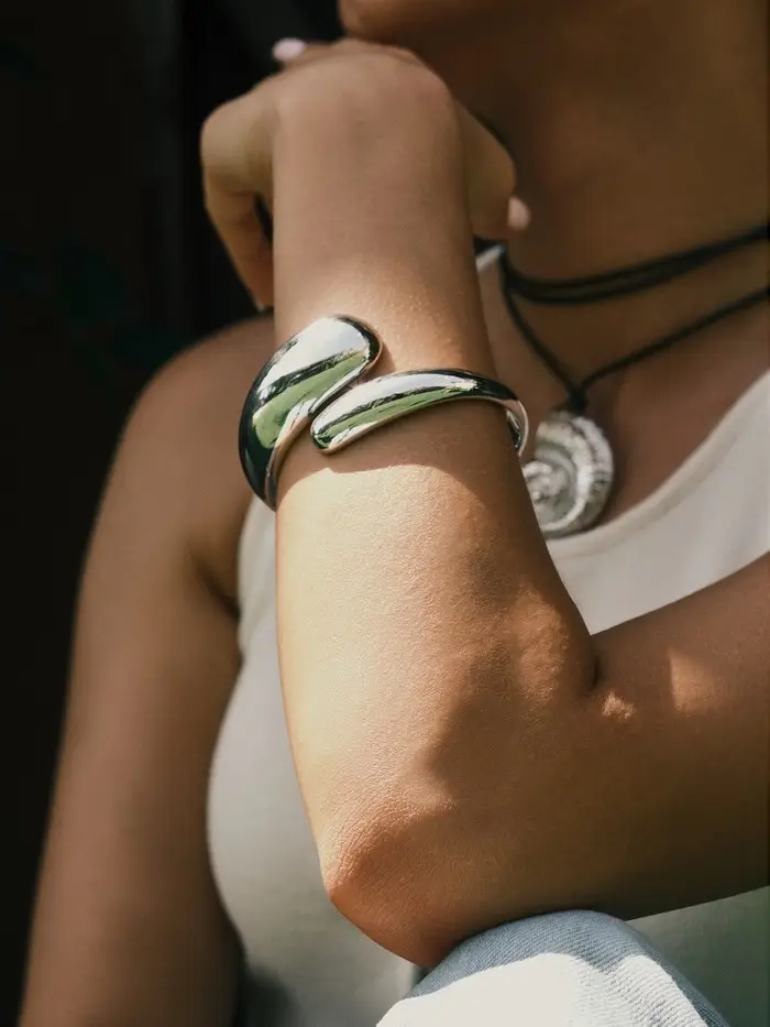 Браслет манжета «Капля», цвет серебро