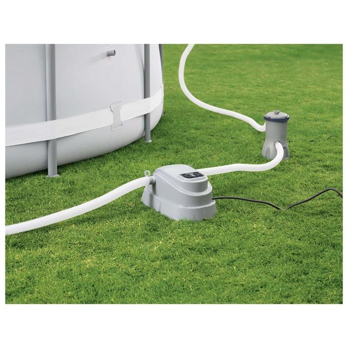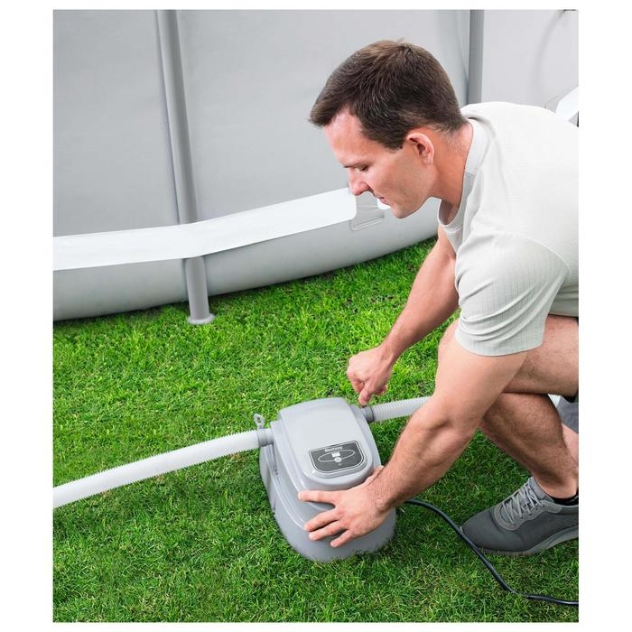 Водонагреватель в прохладную погоду сделает температуру бассейна комфортной для вас. Подключите устройство к фильтру-насосу, и через пару часов вода нагреется на 1,5 °С.