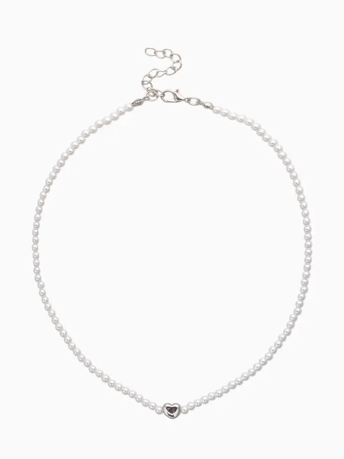 Чокер «Стразик» сердце и жемчужные бусины, белый в серебре, 36 см + 5 см доп, цепочка