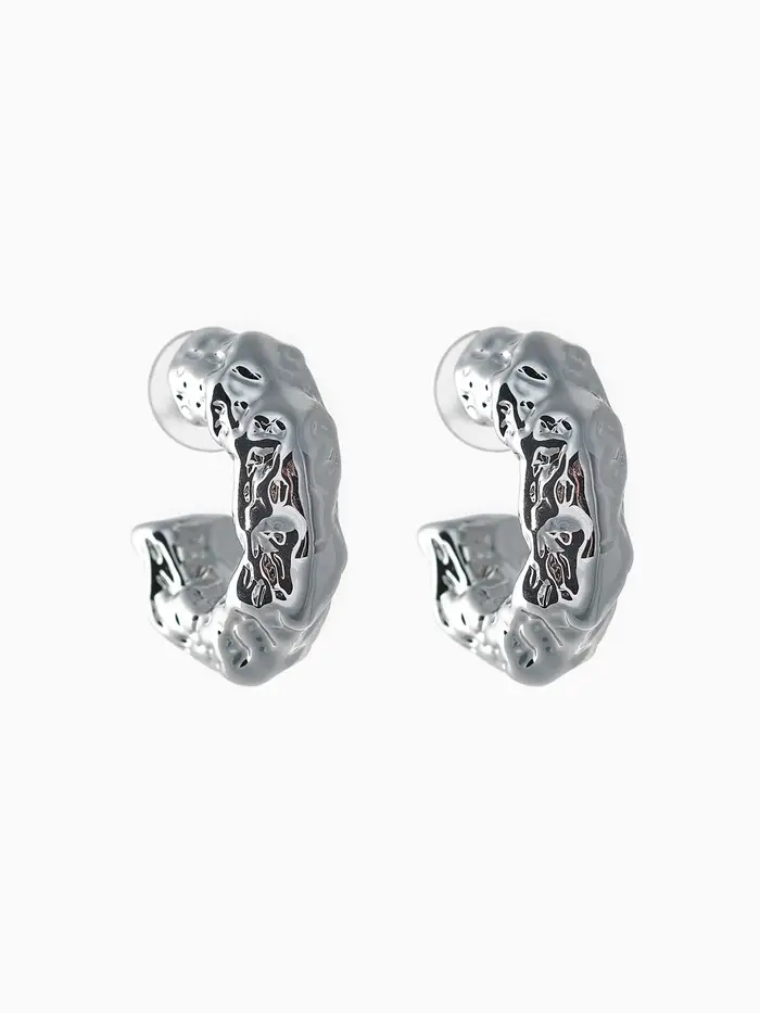 Серьги пластик «Мятые» кольца, цвет серебро