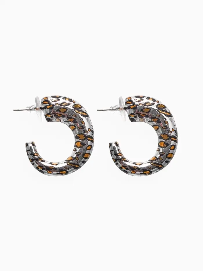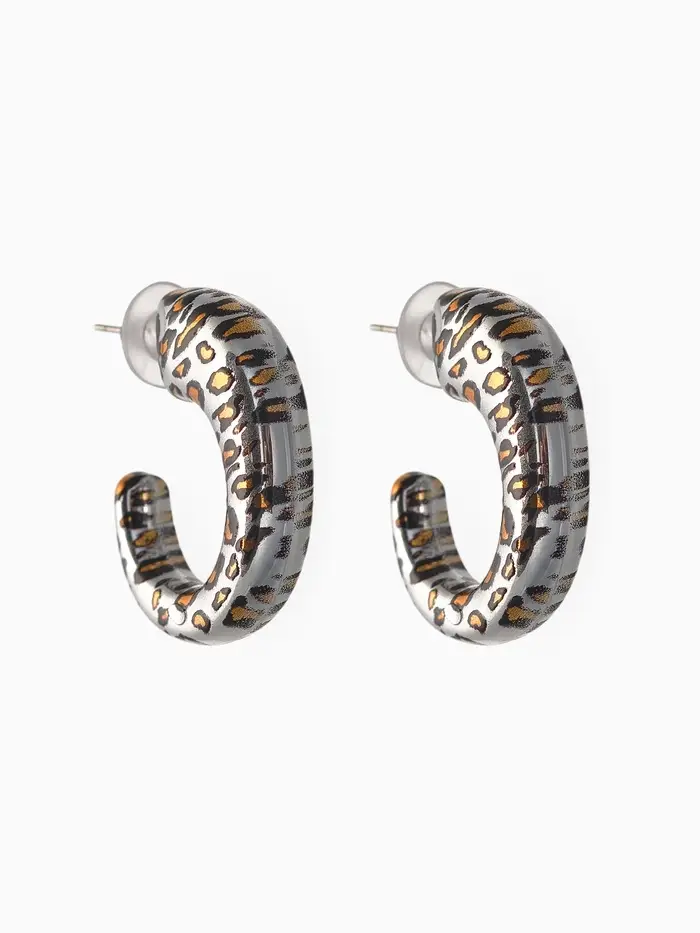 Серьги пластик «Леопард», цвет серебро