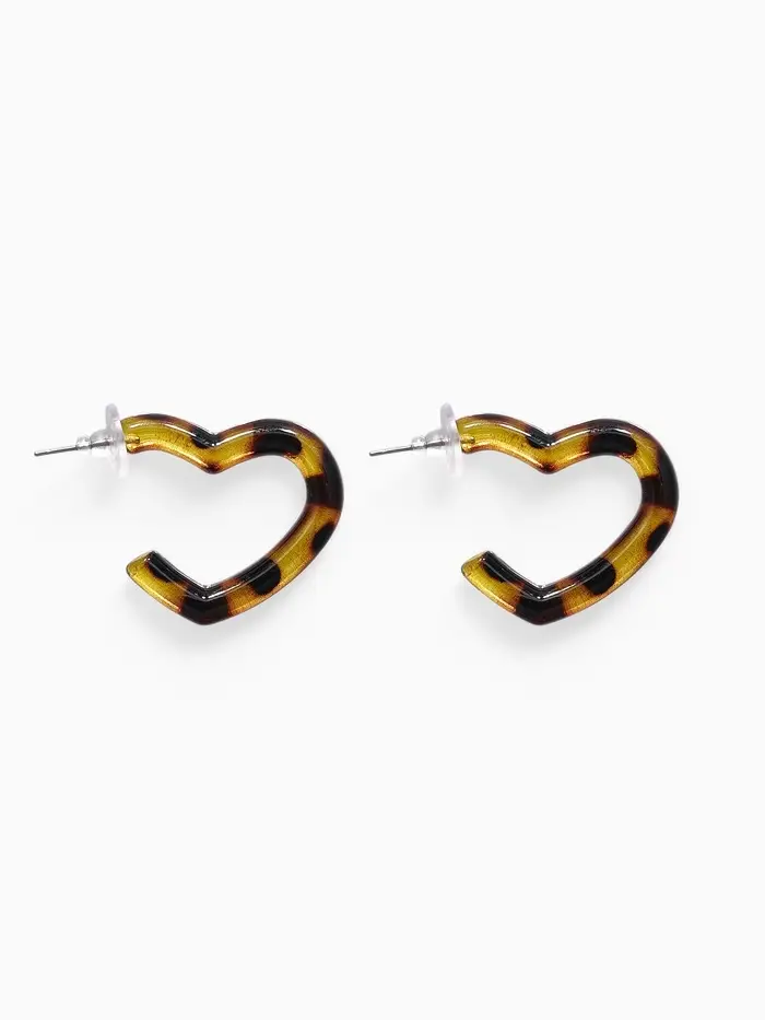 Серьги акрил «Леопард» сердце, цветной в серебре