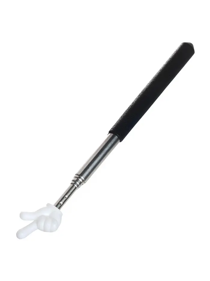 Указка телескопическая 68см черная с белым пальцем