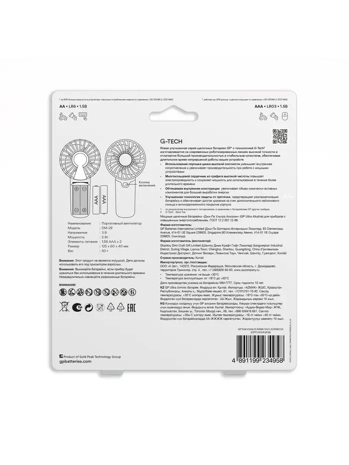 Батарейка алкалиновая GP Ultra, ААА+АА, LR03+LR6-24BL, 1.5В, блистер 12+12 шт, вентилятор