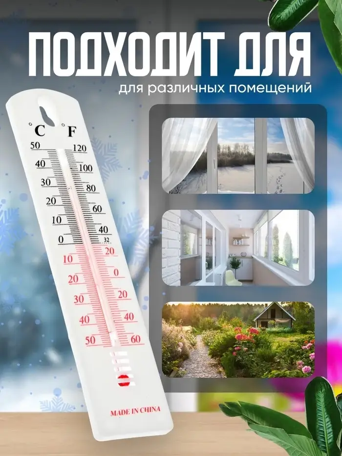Термометр предназначен для определения температуры воздуха снаружи помещения. Прибор отображает температуру по шкале Цельсия и по Фаренгейту. Жидкость в столбике термометра представляет собой подкрашенный спирт, что делает изделие безопасным в эксплуатации.