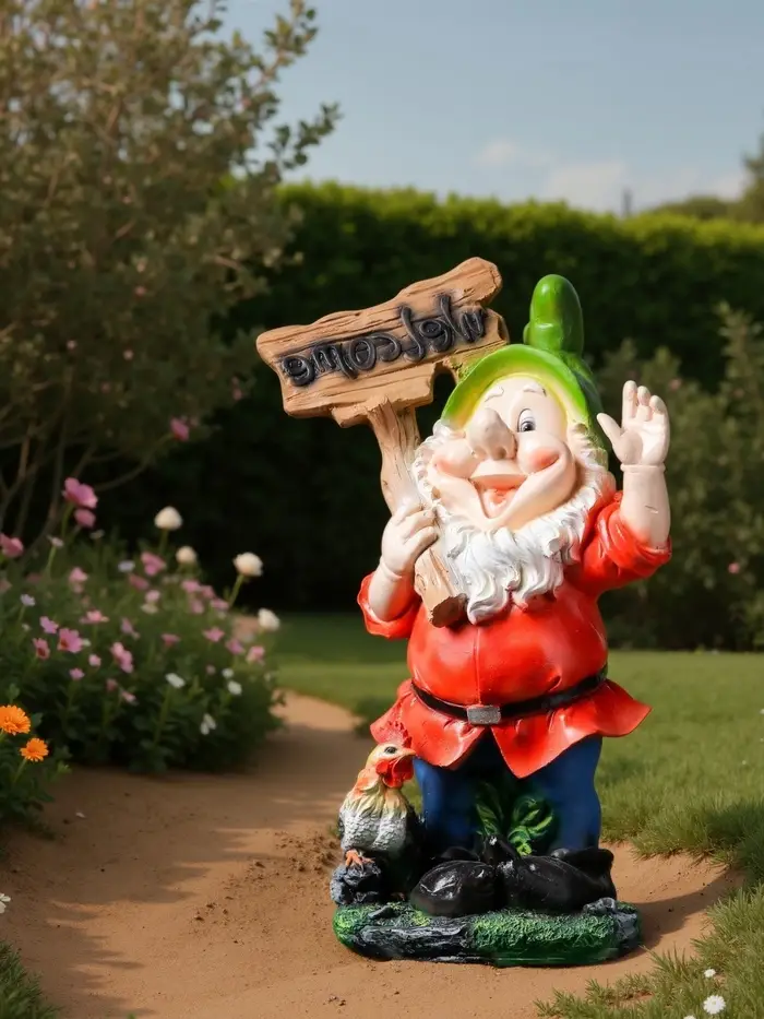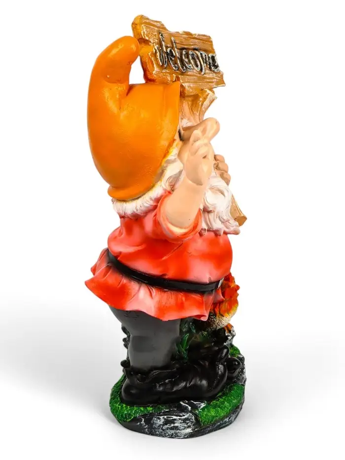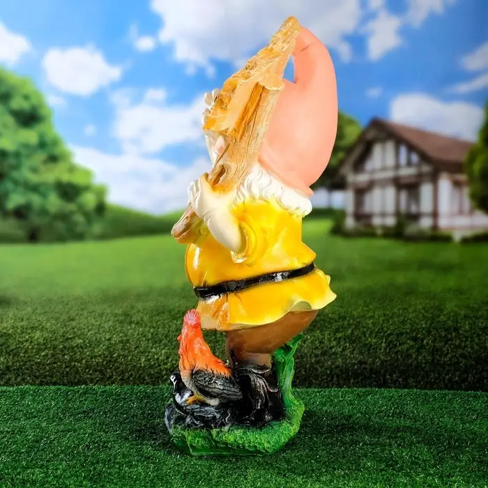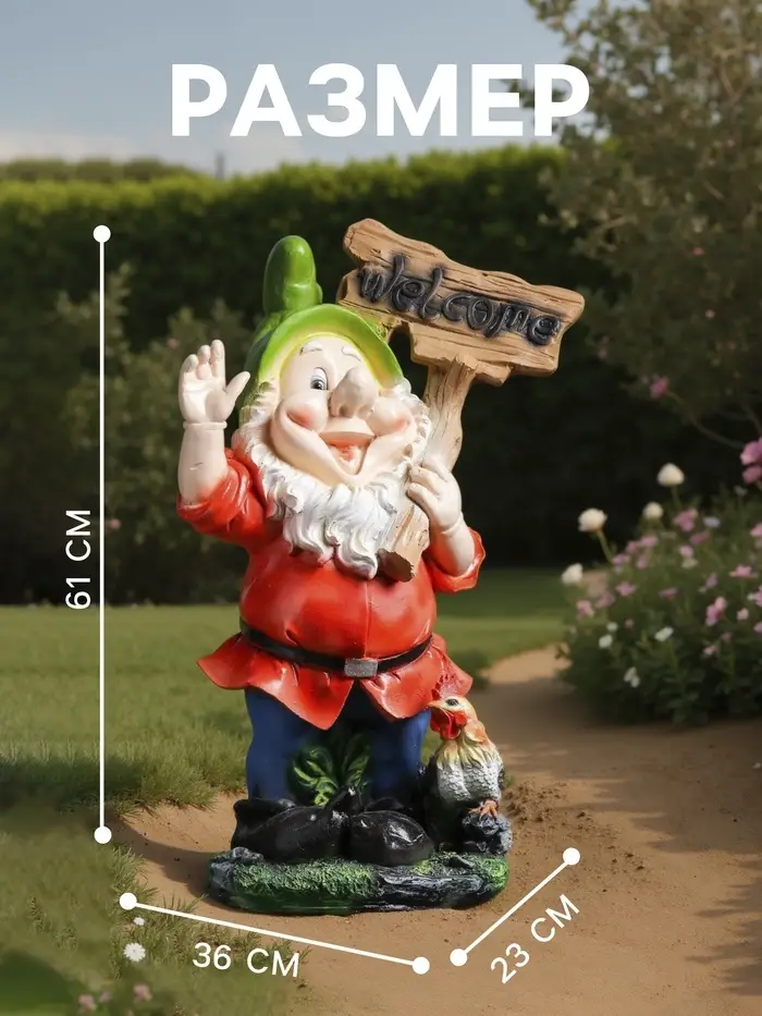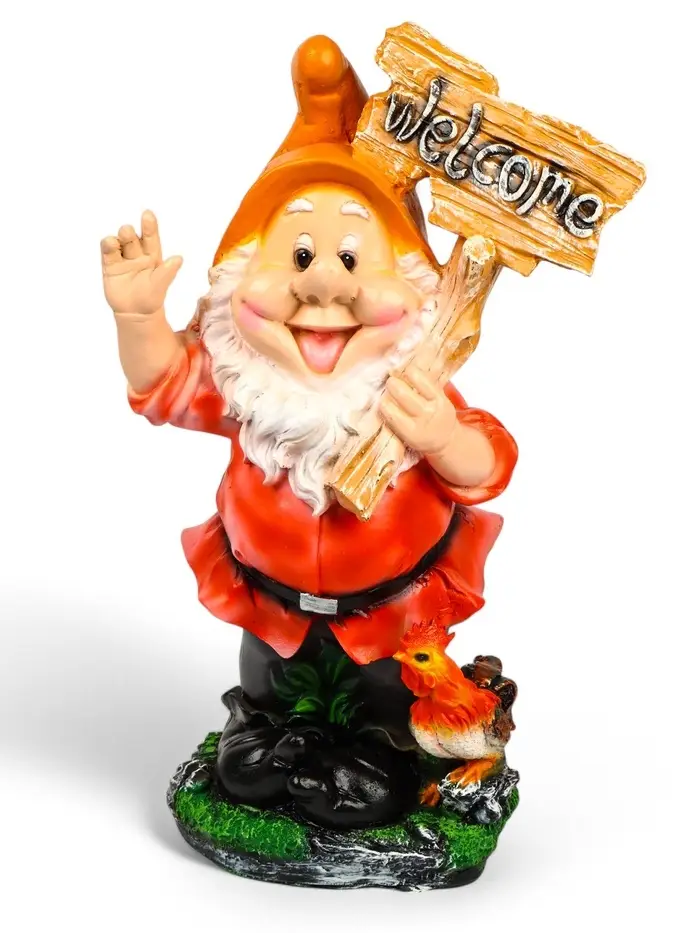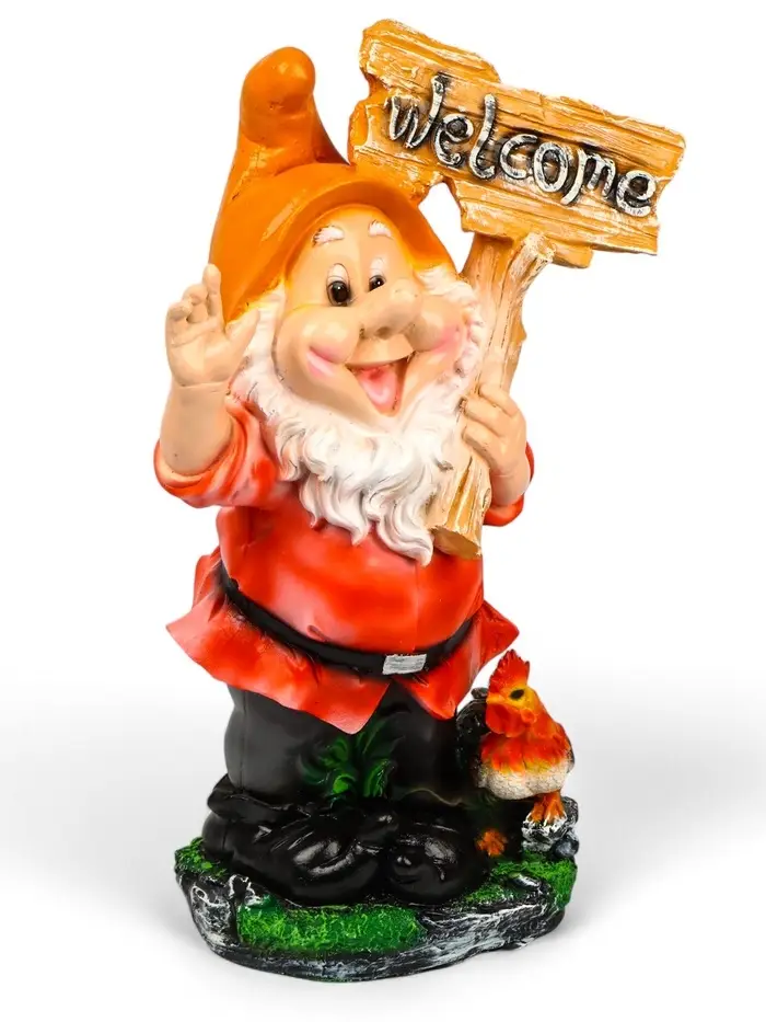 Садовая фигура из полистоуна «Гном с табличкой WELCOME с петухом», 61×23×36 см, МИКС