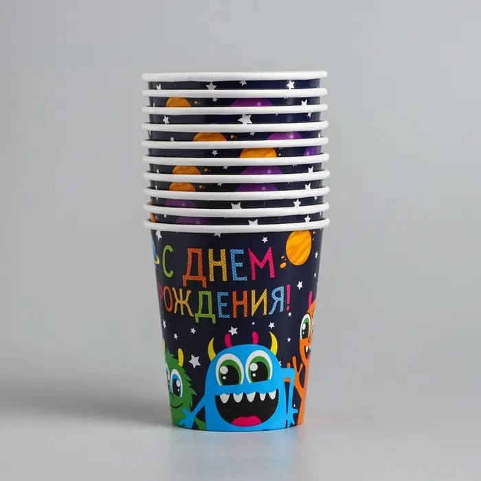 Стакан одноразовый бумажный "Монстрики", 250 мл.