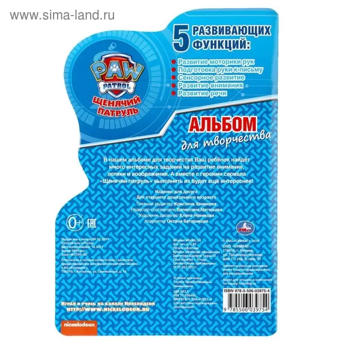 Развивающая раскраска «Щенячий патруль» с вырубкой в виде персонажа, малого формата