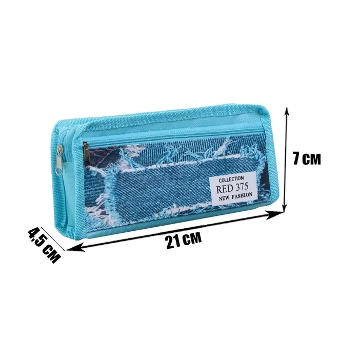 Пенал школьный на молнии 2 отделения "Джинса", МИКС