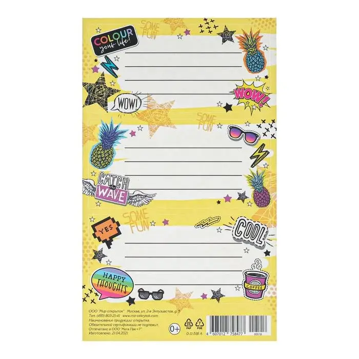 Наклейки на тетрадь "Английские надписи" желтый фон, 98х159мм