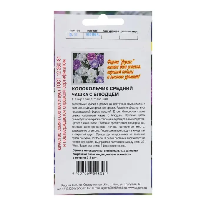 Семена Цветов Колокольчик "Чашка с блюдцем", 0,1 г