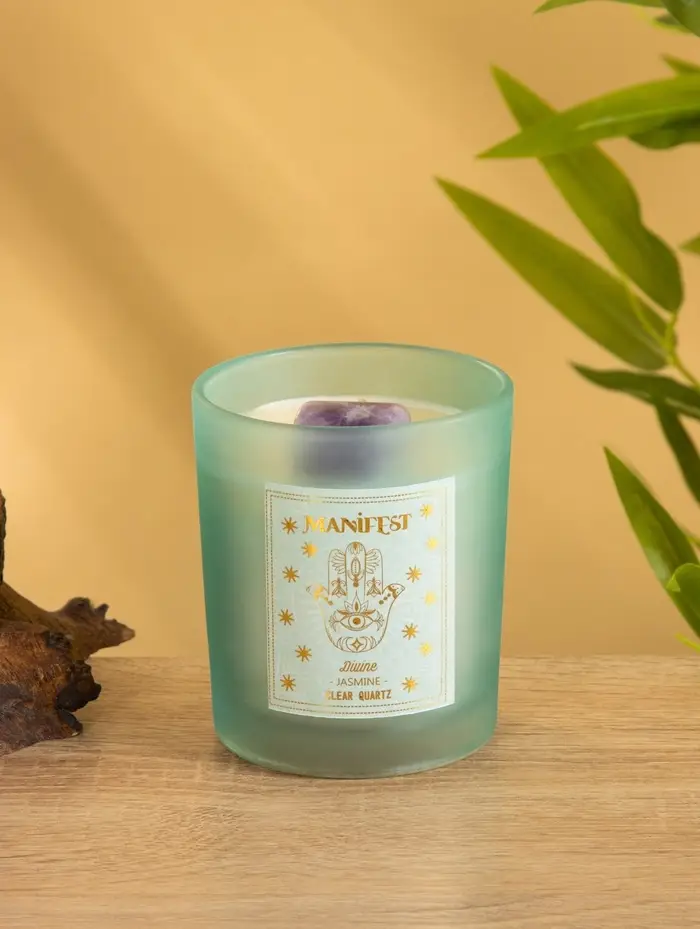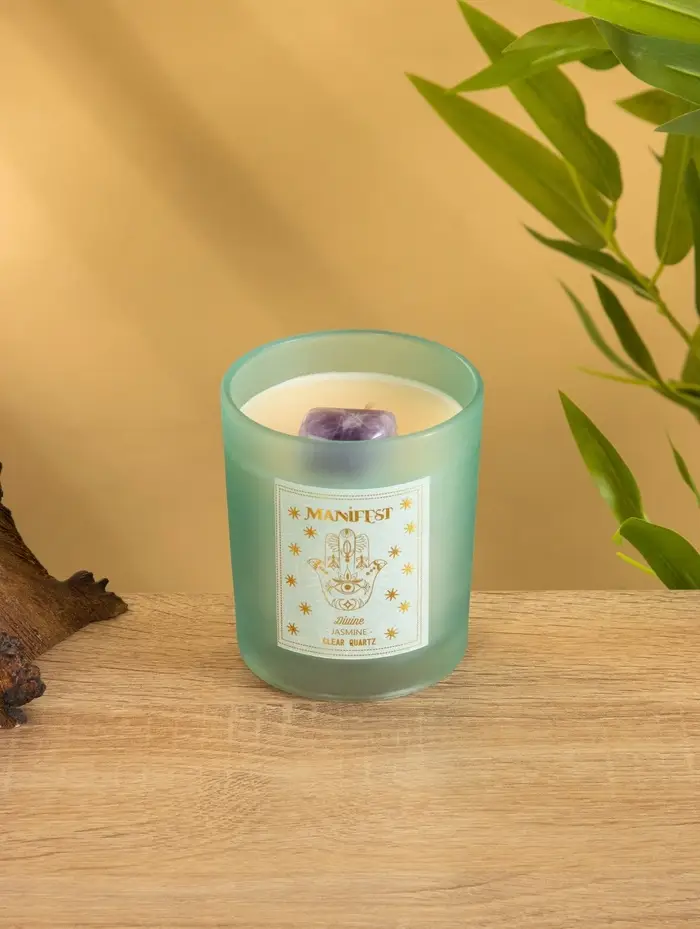 Свеча в стекле с камнем Manifest жасмин 200 гр соевый воск