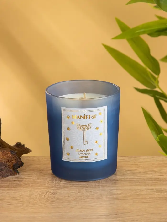 Свеча в стекле с камнем Manifest лаванда 200 гр соевый воск