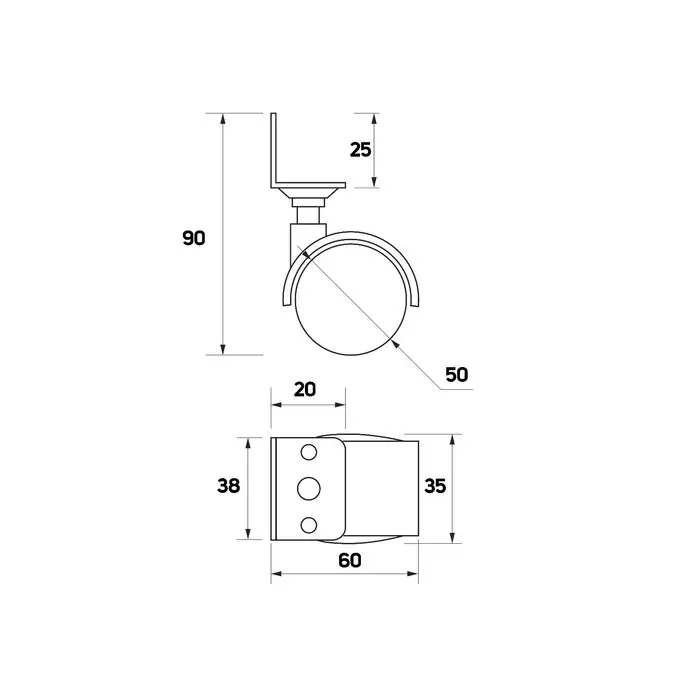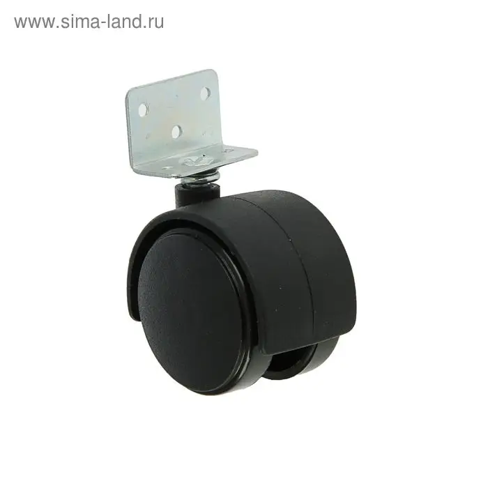 Колесо мебельное, d=50 мм, Г-образное, с креплением, без тормоза, черный пластик