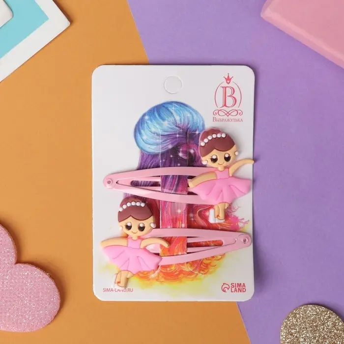 Невидимка для волос "Абель" (набор 2 шт) балерина, 5 см, розовый