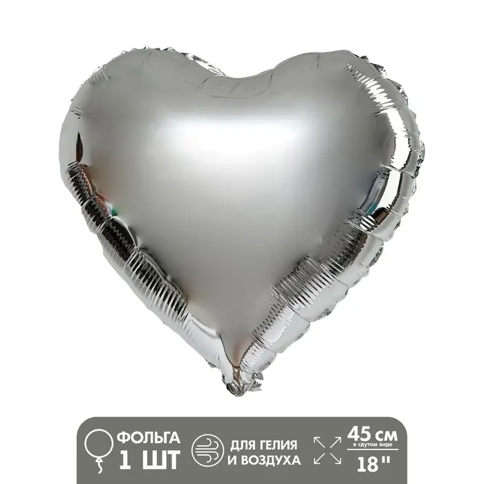 Воздушный шар фольгированный 18" «Сердце», серебряный