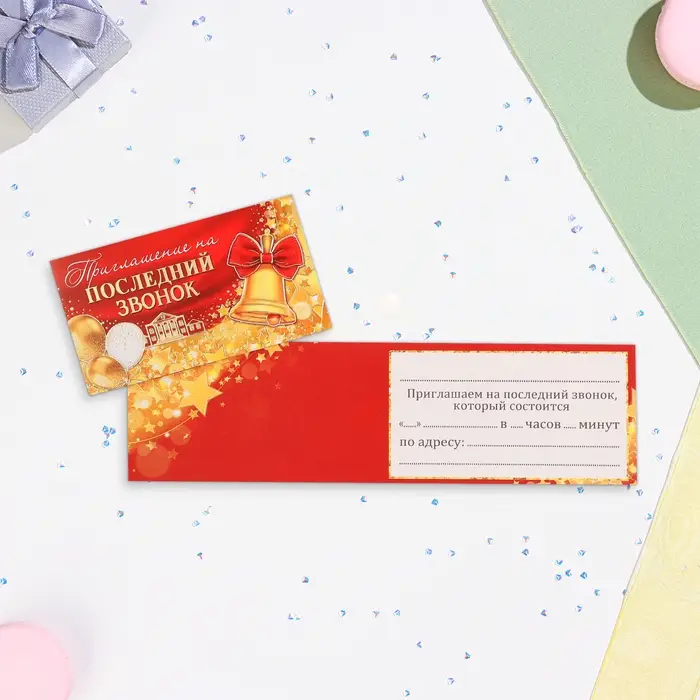 Приглашение "На Выпускной!" тиснение, красный фон, 12х7,5 см