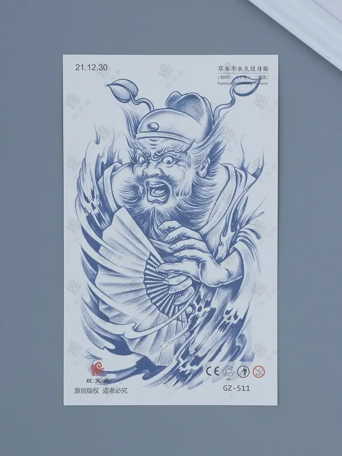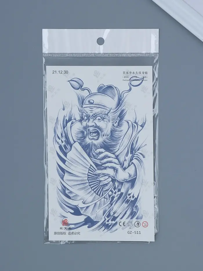 Татуировка на тело "Китайский воин с веером - крик" 18х11 см