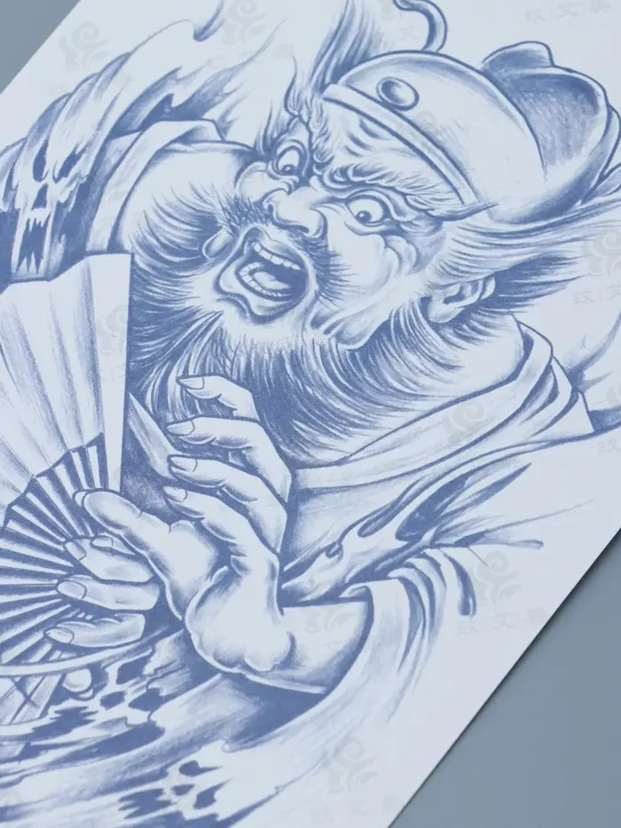 Татуировка на тело "Китайский воин с веером - крик" 18х11 см — Reseiiup