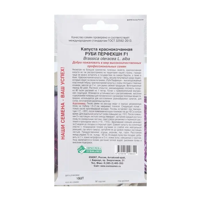 Семена Капуста краснокочанная Руби Перфекшн F1, 10 шт