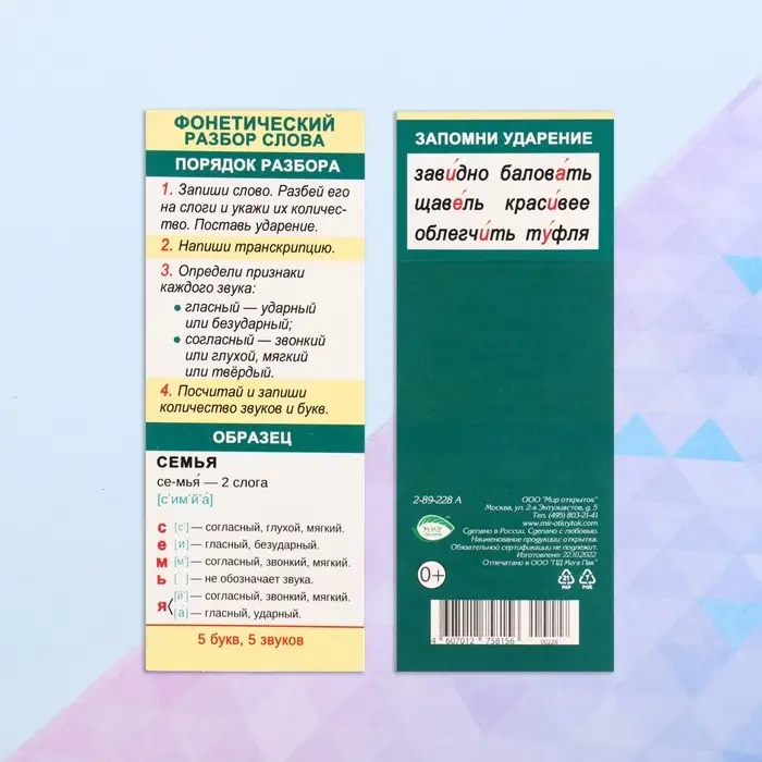 Закладка-памятка «Фонетический разбор», 6×18.4 см
