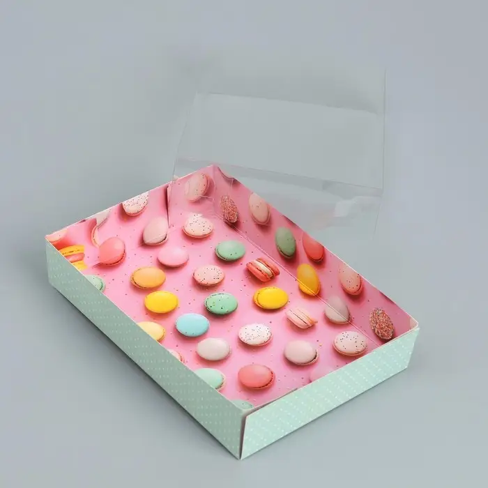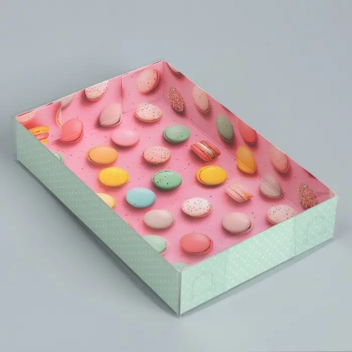 Кондитерская упаковка, коробка для макарун с пластиковой крышкой, «Макаруны», 18 х 12 х 3.5 см