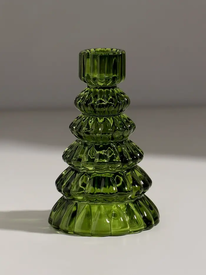 Подсвечник стекло "Ёлочка" зелёный d=2 см 8,5х8,5х13,5 см