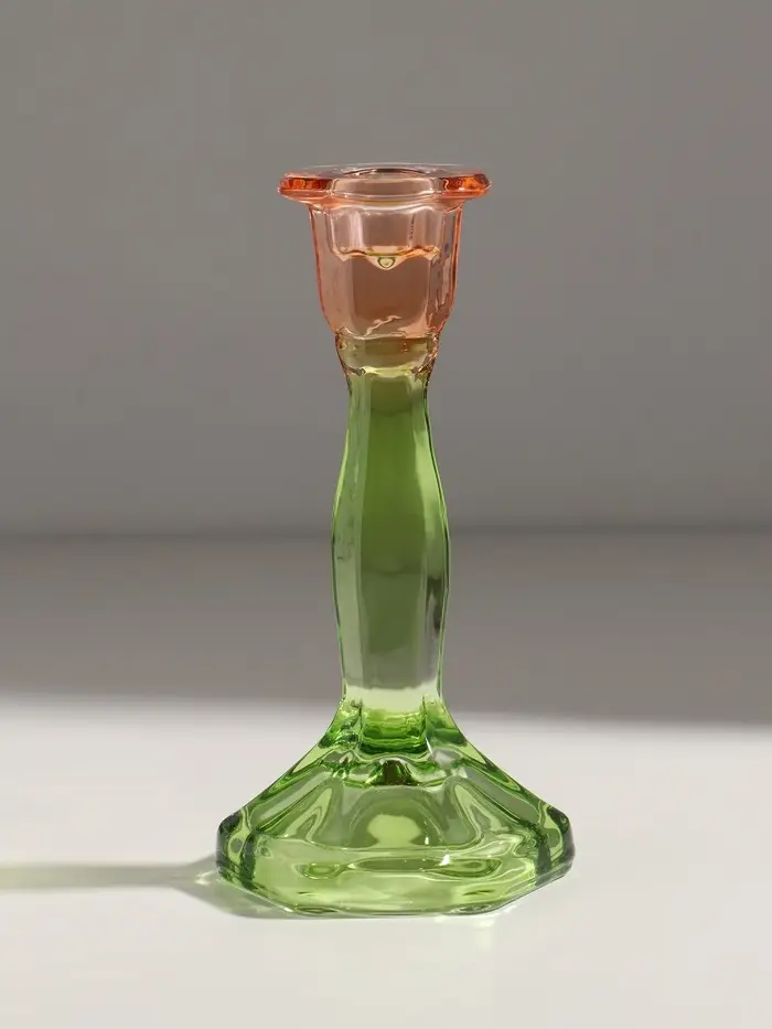 Подсвечник стекло "Градиент. Грани" оранжево-зелёный d=2,2 см 10х10х19 см