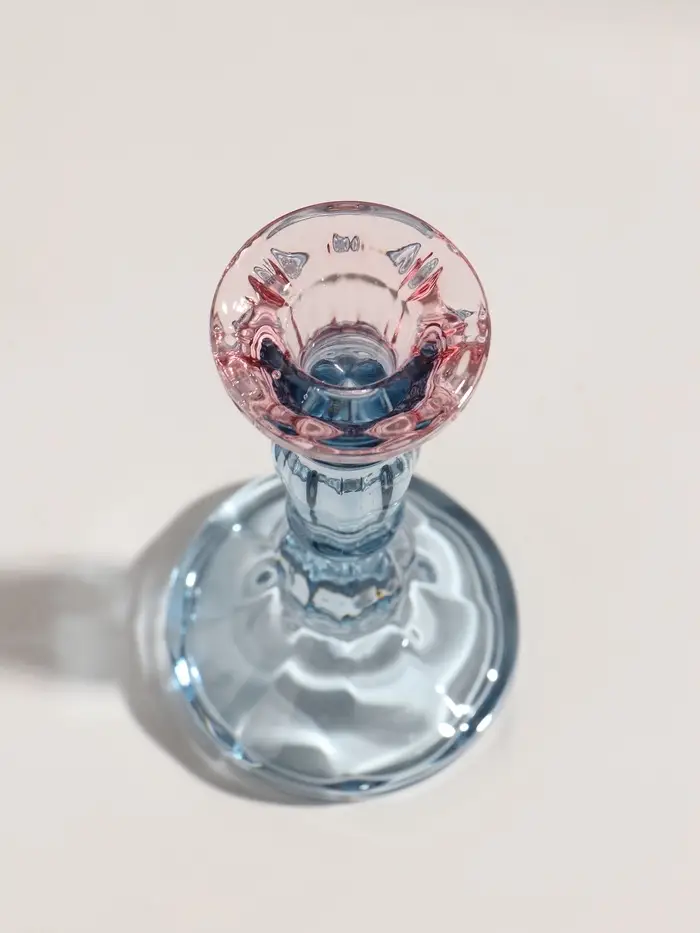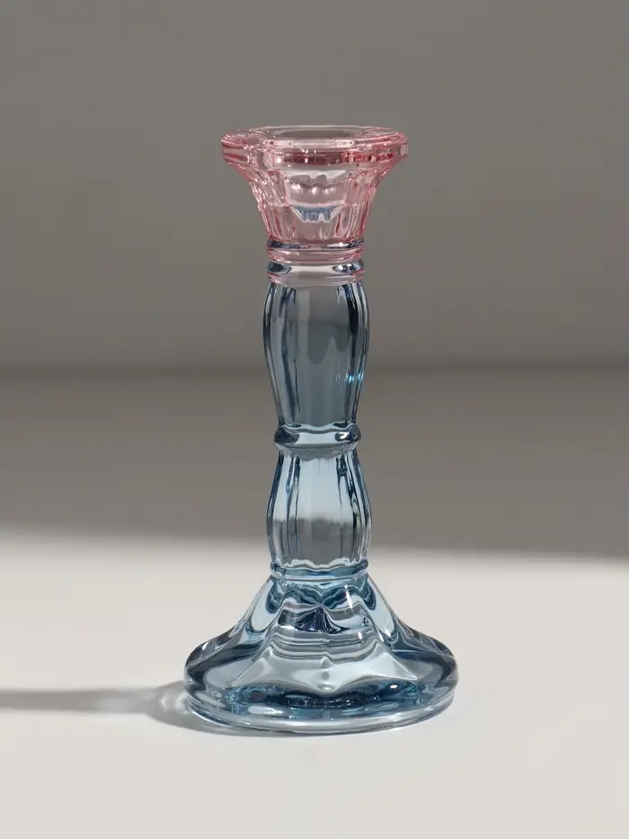 Подсвечник стекло "Градиент. Фактура" розово-голубой d=2,2 см 7х7х15 см