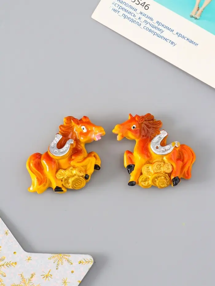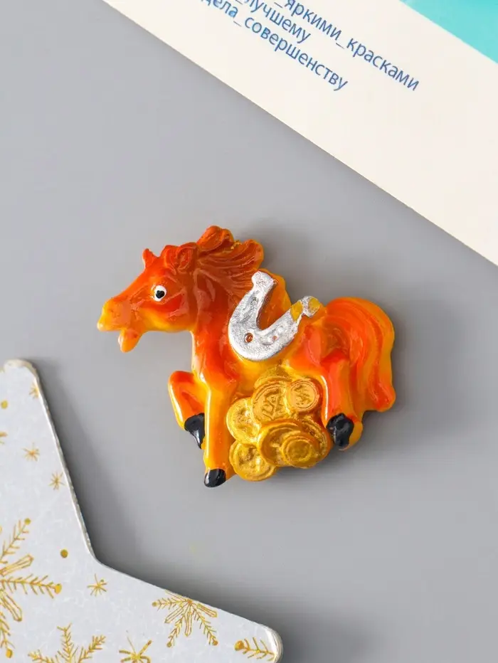 Магнит полистоун "Коняшка с монетами и подковой" МИКС 3,5х4 см