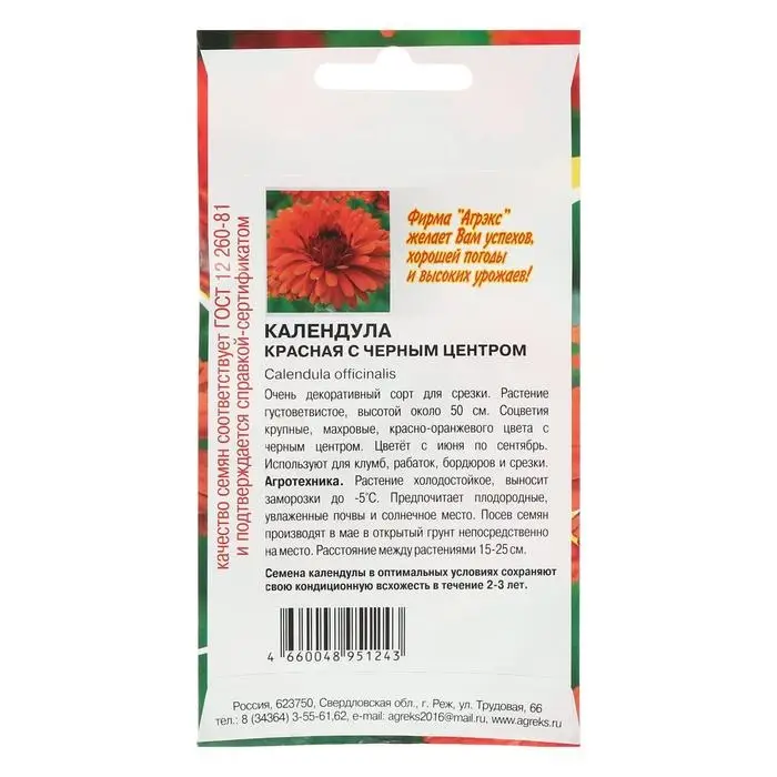 Семена цветов однолетние Календула махровая красная с черным центром центром 0,2 г