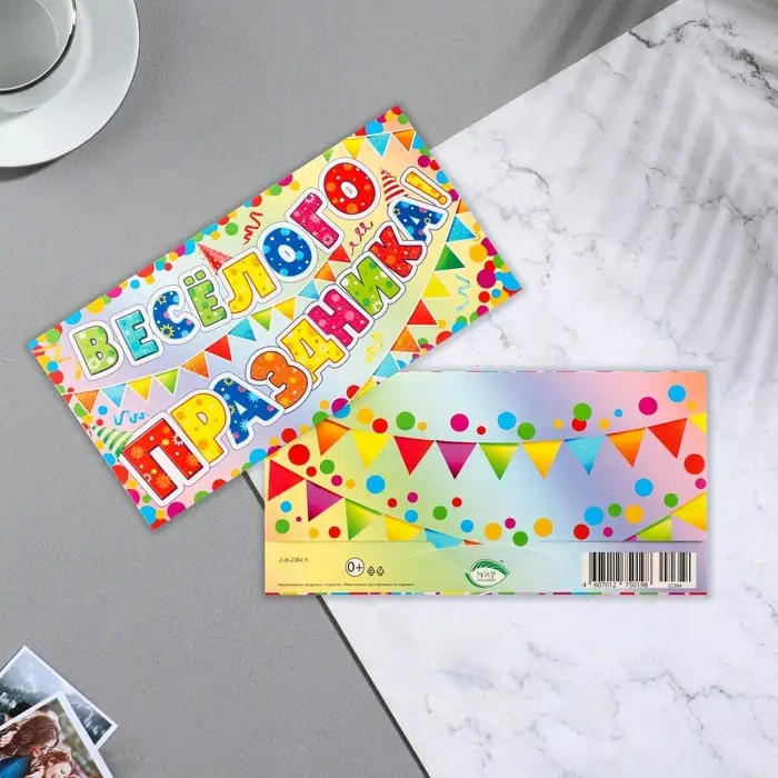 Конверт для денег "Веселого Праздника!" флажки, 16,5х8,5см