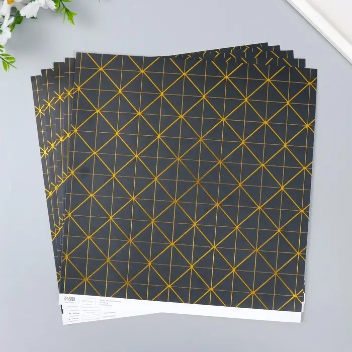 Бумага для скрапбукинга золото "Геометрия на чёрном" плотность 180 гр 30,5х32 см