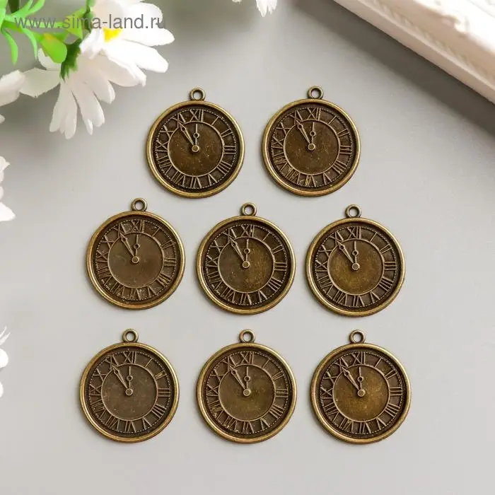 Декор для творчества металл "Часы с римскими цифрами" бронза 2,1х1,8 см