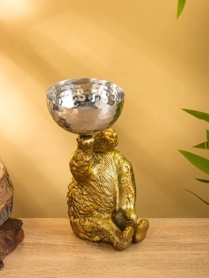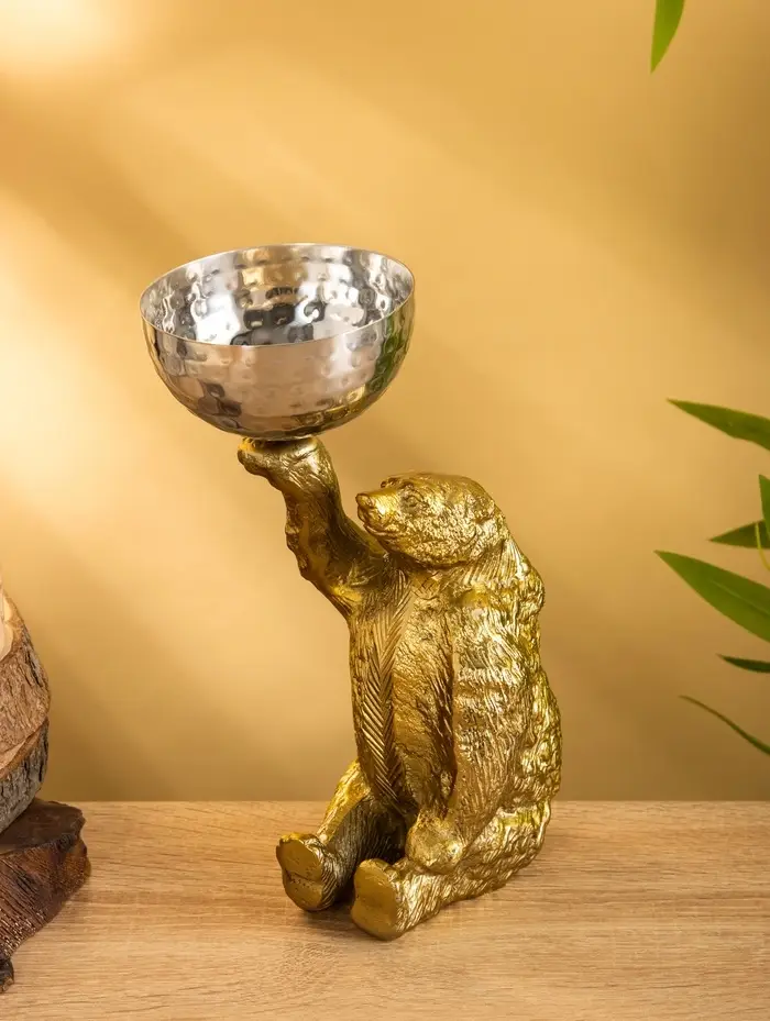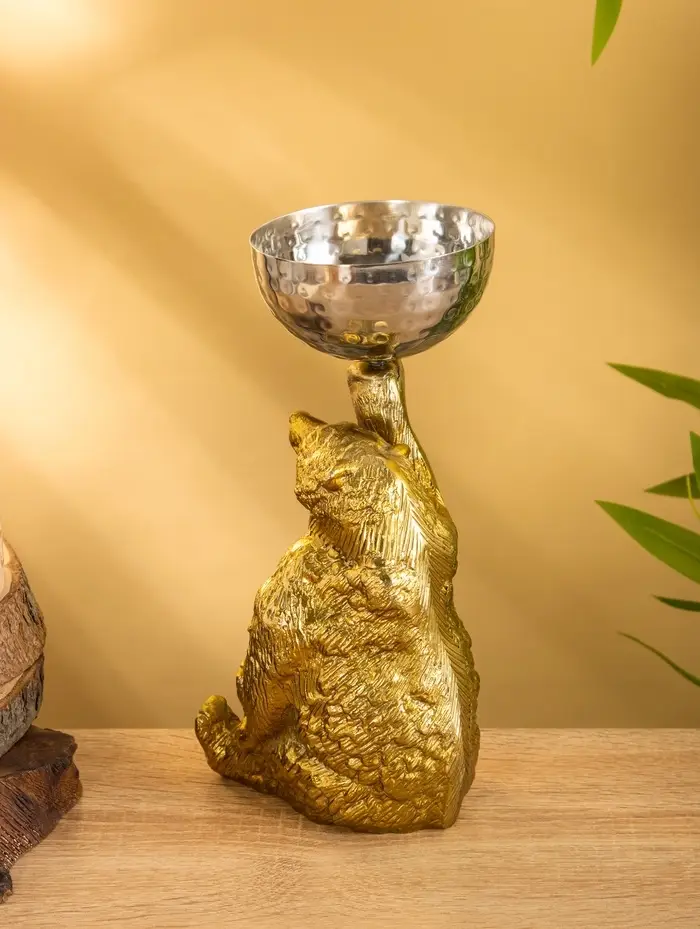 Сувенир с чашей "Медведь" 14,5х13х23 см, алюминий