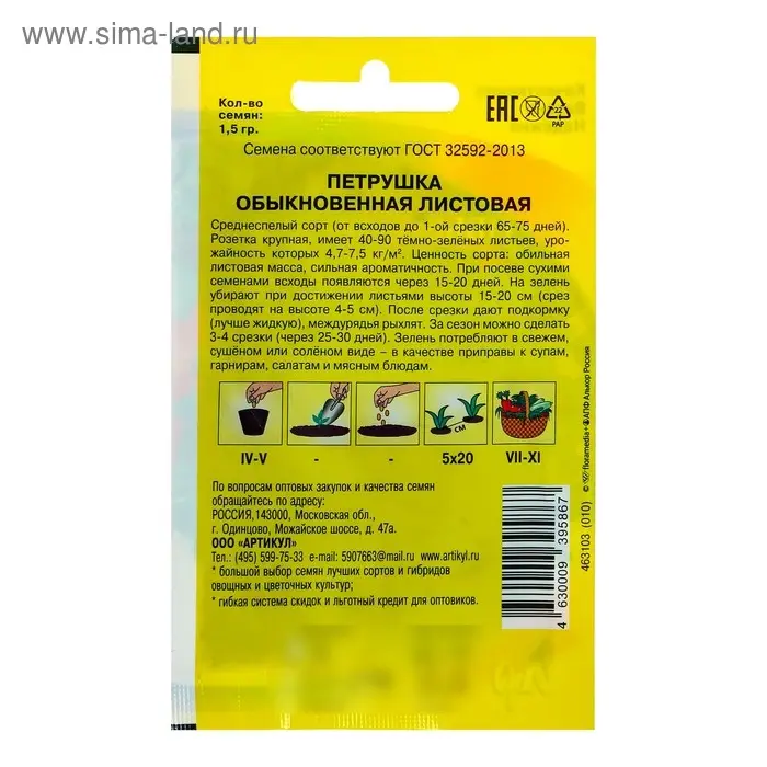 Семена Петрушка "Обыкновенная Листовая" среднеспелая, 1,5 г