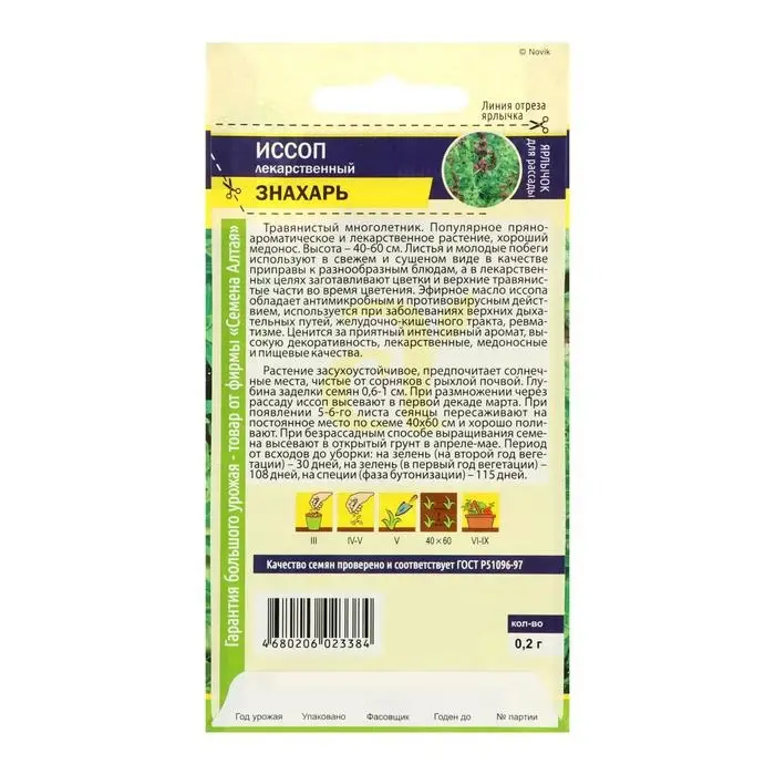 Семена Иссоп "Греческий мед", смесь сортов, 0,1 г
