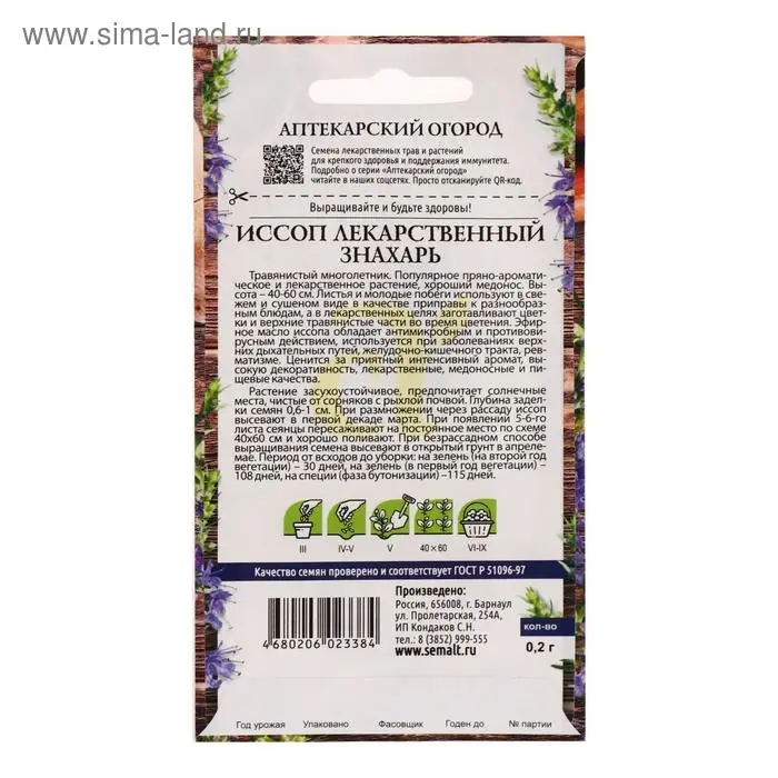Семена Иссоп анисовый Эликсир молодости Целебный чай Ц/П 0,05г