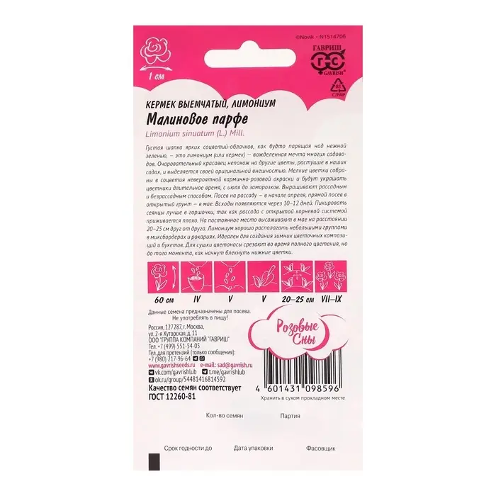 Семена цветов Лимониум "Малиновое парфе", ц/п, серия Розовые сны, 0,05 г