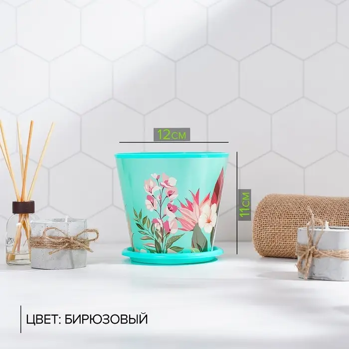 Горшок для цветов Доляна «Тропический лес», 800 мл, цвет зелёный