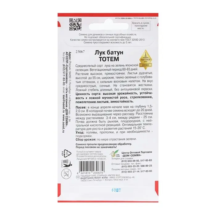 Семена Лук "Батун Тотем", 60 шт