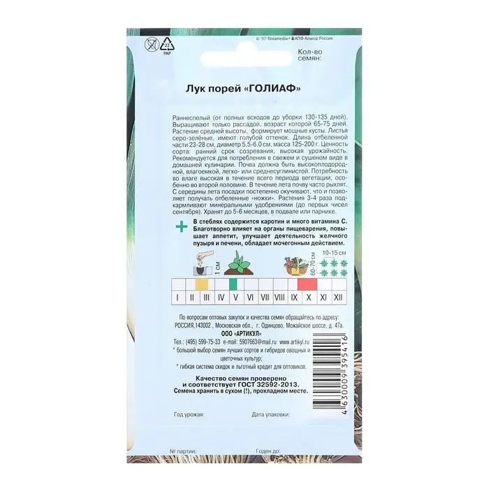 Семена Лук порей "Голиаф", раннеспелый, 0,5 г
