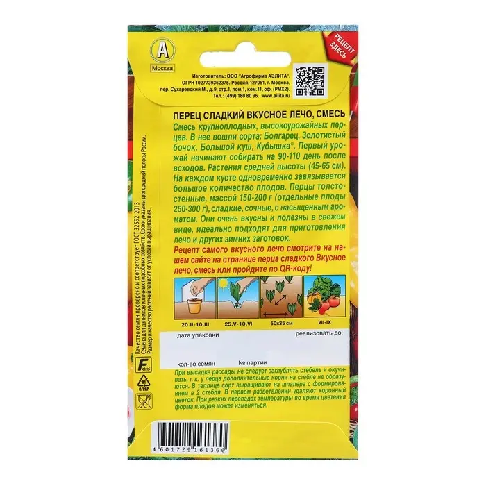 Семена Перец сладкий Вкусное лечо, смесь Блюда стран мира Ц/П 20шт