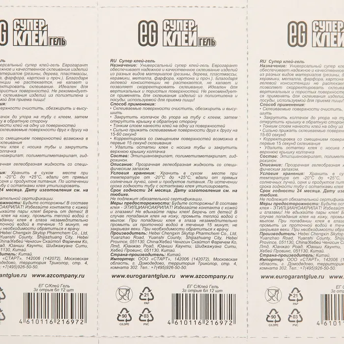 Супер-Клей Еврогарант Гель 3г