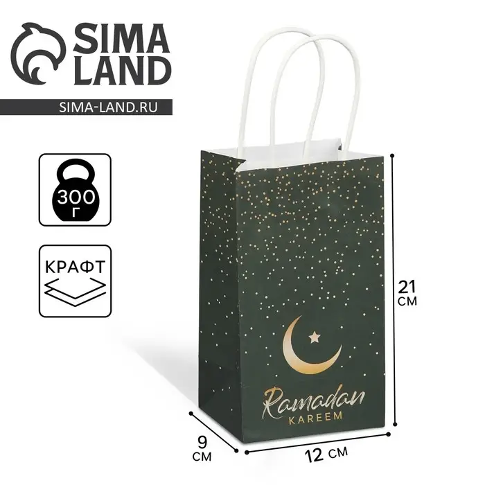 Пакет подарочный крафтовый «Рамадан», 12 х 21 х 9 см