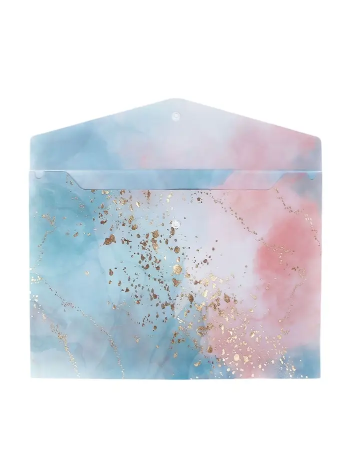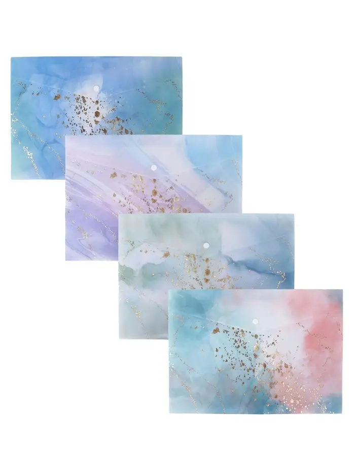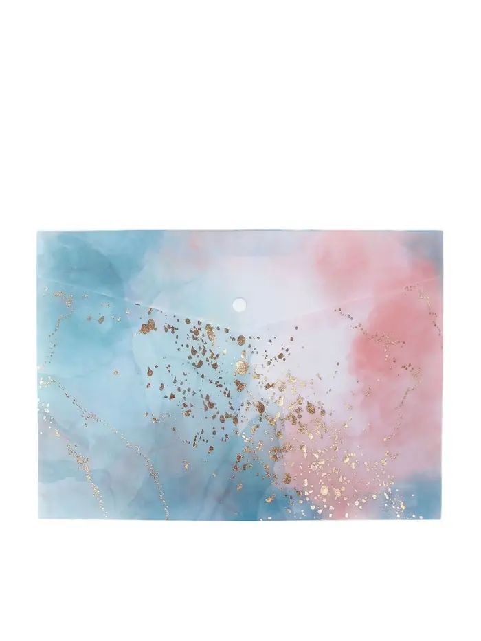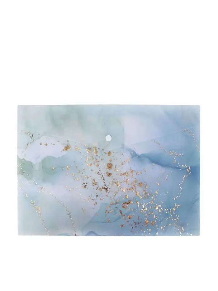 Папка-конверт на кнопке формат А4 180мкр блестящая МИКС Мрамор с золотом (штрихкод на штуке) 10843