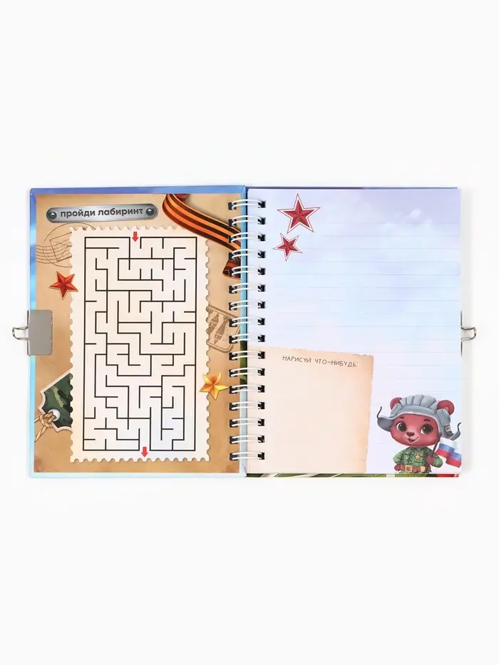 Блокнот на замочке А6, 50 листов в твердой обложке «Отважному защитнику»