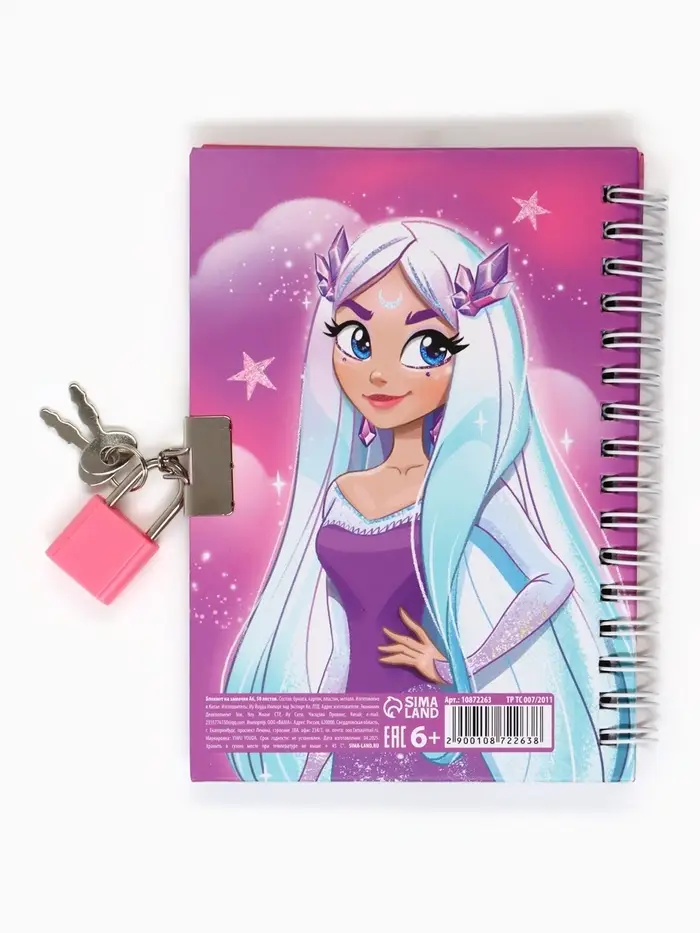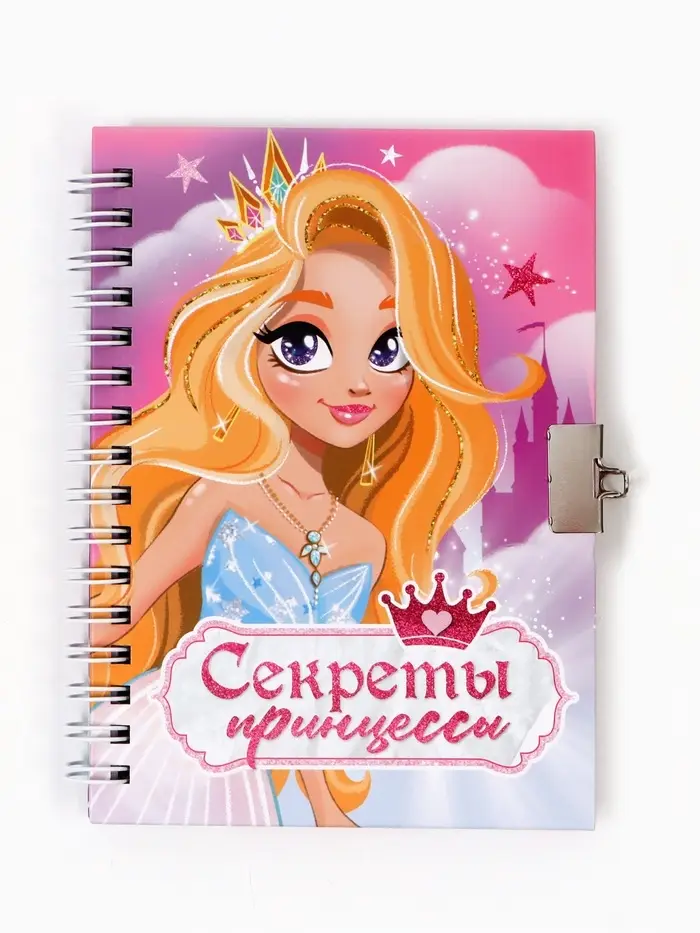 Блокнот на замочке А6, 50 листов в твердой обложке «Секреты принцессы»