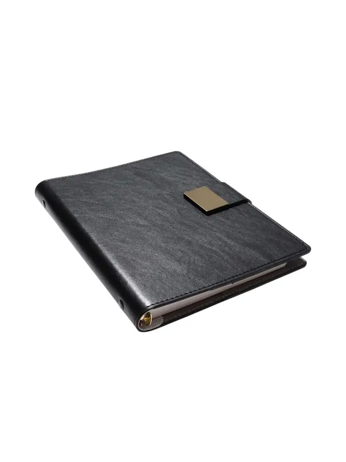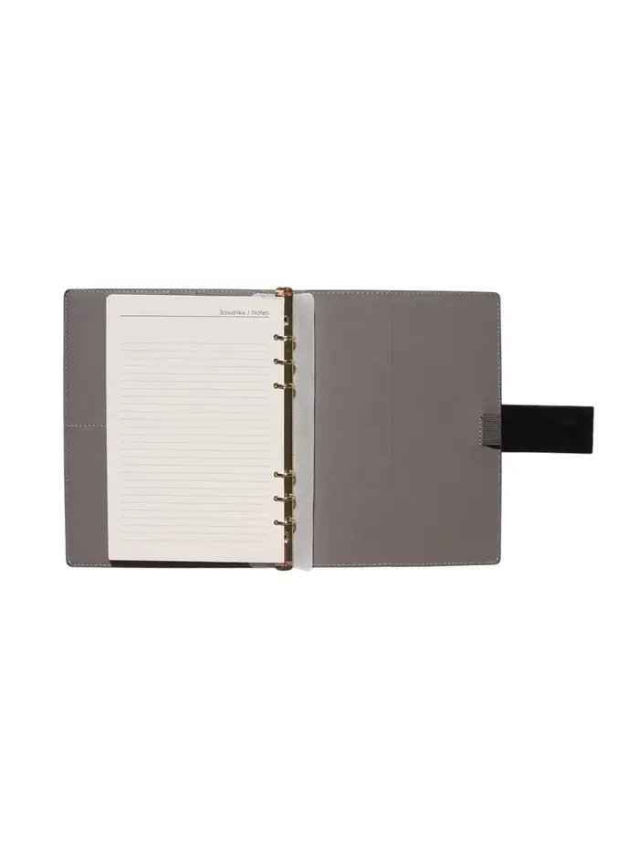 Органайзер на кольцах, А5, с хлястиком, 80л, линия, к/зам, Черный