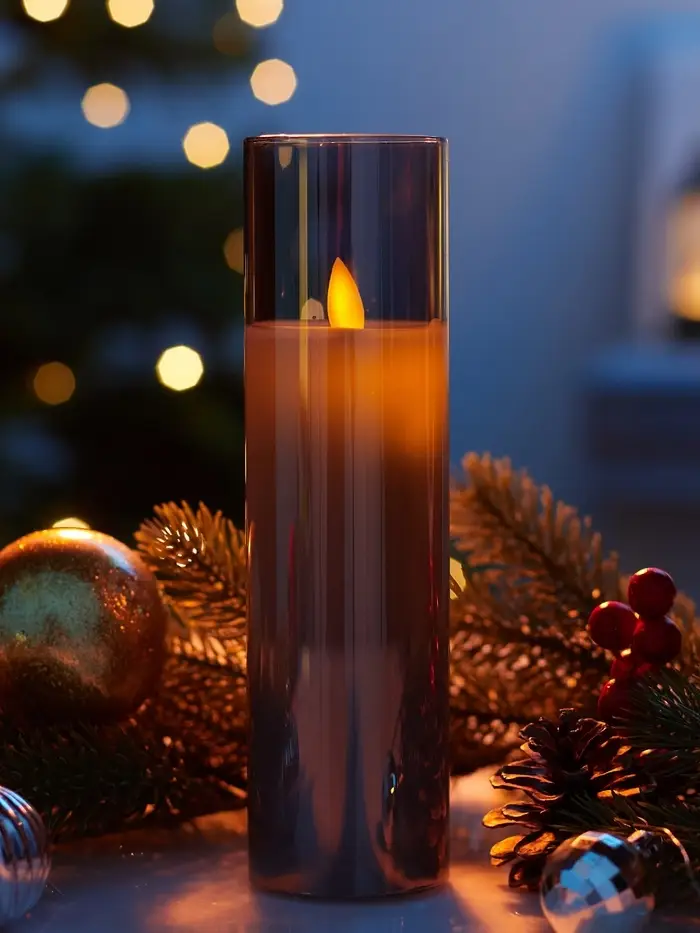 Светодиодная свеча "Серебристая" 18х5.5 см, AAx2 (не в компл.), Т/БЕЛЫЙ